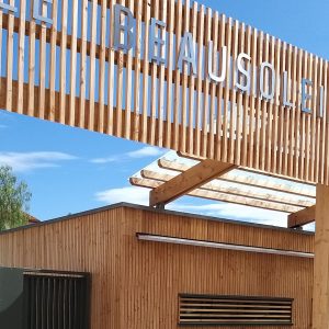 Le parti pris pour l’extension de la maternelle est fortement marqué par le projet de l’existant et se fond dans les géométries et le vocabulaire déjà employé. Nous profiterons de l’utilisation du bois comme parement de l’extension pour réaliser des ombrières sur toutes les salles de classes afin d’en améliorer le confort thermique.