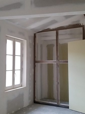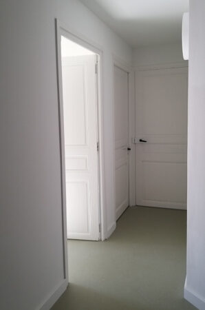 Les murs de façades sont traités par un corps d’enduit en chanvre et chaux et application d’un enduit de finition à la chaux. En utilisant des matériaux biosourcés, ce procédé améliore considérablement le confort intérieur sans grever les surfaces utiles.